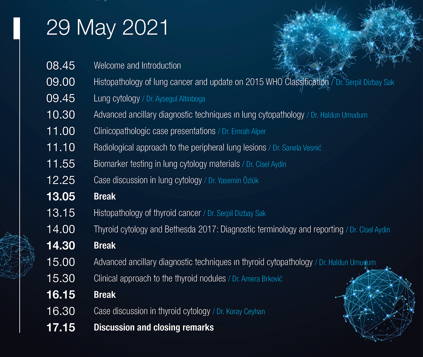 The main topics of the School will be lung and thyroid cytopathology. The lecturers will be distinguished and well-experienced cytopathologists and clinicians from Turkey and Bosnia and Herzegovina.